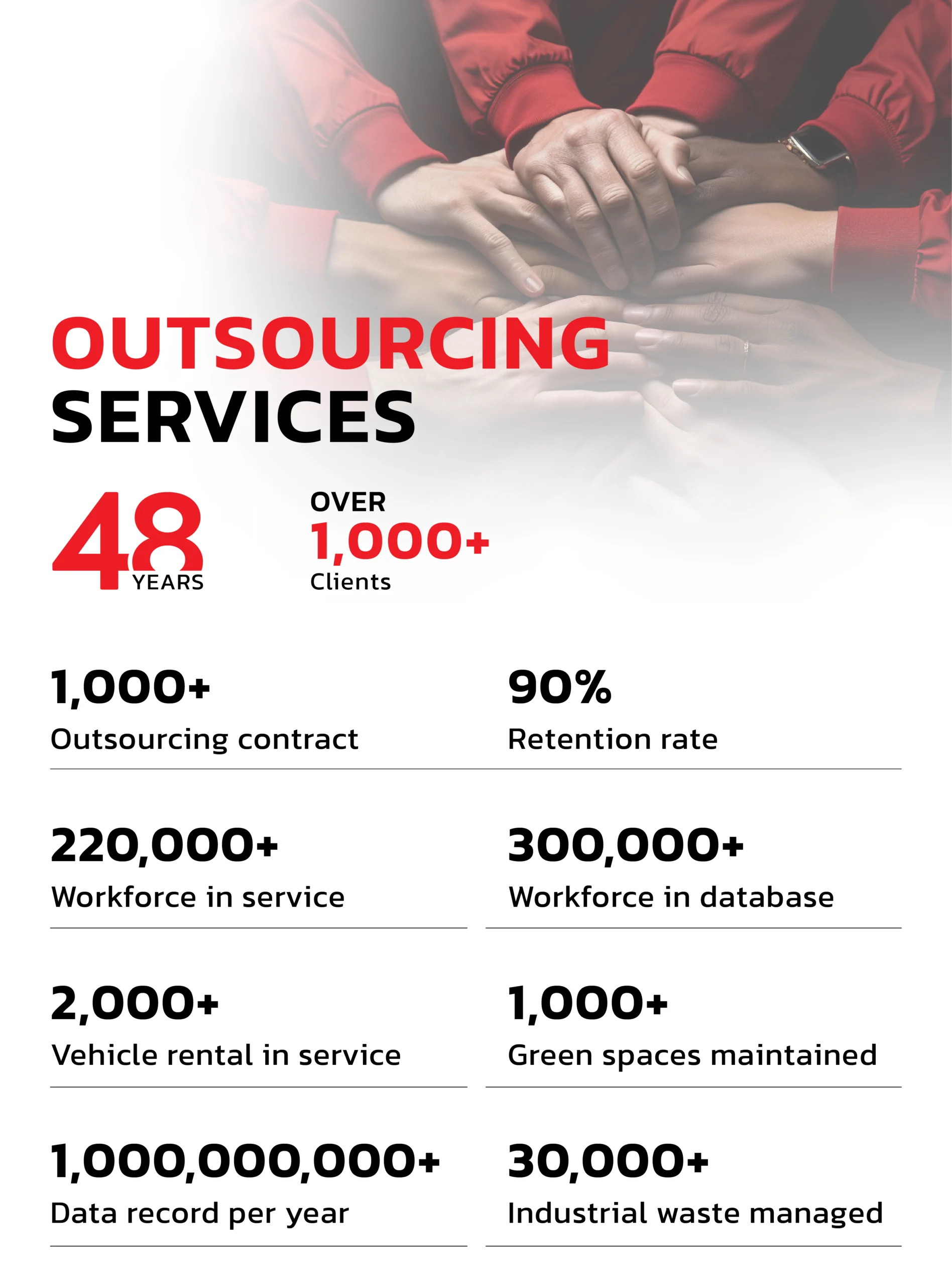 บริษัทจัดหาพนักงาน Outsource เพื่อธุรกิจ ภายใต้บริษัท สยามราชธานี จำกัด (มหาชน) ซึ่งเป็นผู้ประกอบการธุรกิจหลัก 2 รูปแบบเพื่อ Transformation องค์กรของลูกค้า คือ 1. ธุรกิจบริการเอาท์ซอร์ส (Outsource Service) เช่น บริหารจัดการบุคลากร บริการรถเช่าองค์กร บริการจัดการภูมิทัศน์สวนขนาดใหญ่ บริการกำจัดขยะอุตสาหกรรม 2. ธุรกิจบริการดิจิทัล (Digital Service) เช่น บริการจัดการและนำเข้าข้อมูลแบบดิจิทัล บริการแพลตฟอร์มกระบวนการธุรกิจ และกระบวนการอัตโนมัติ