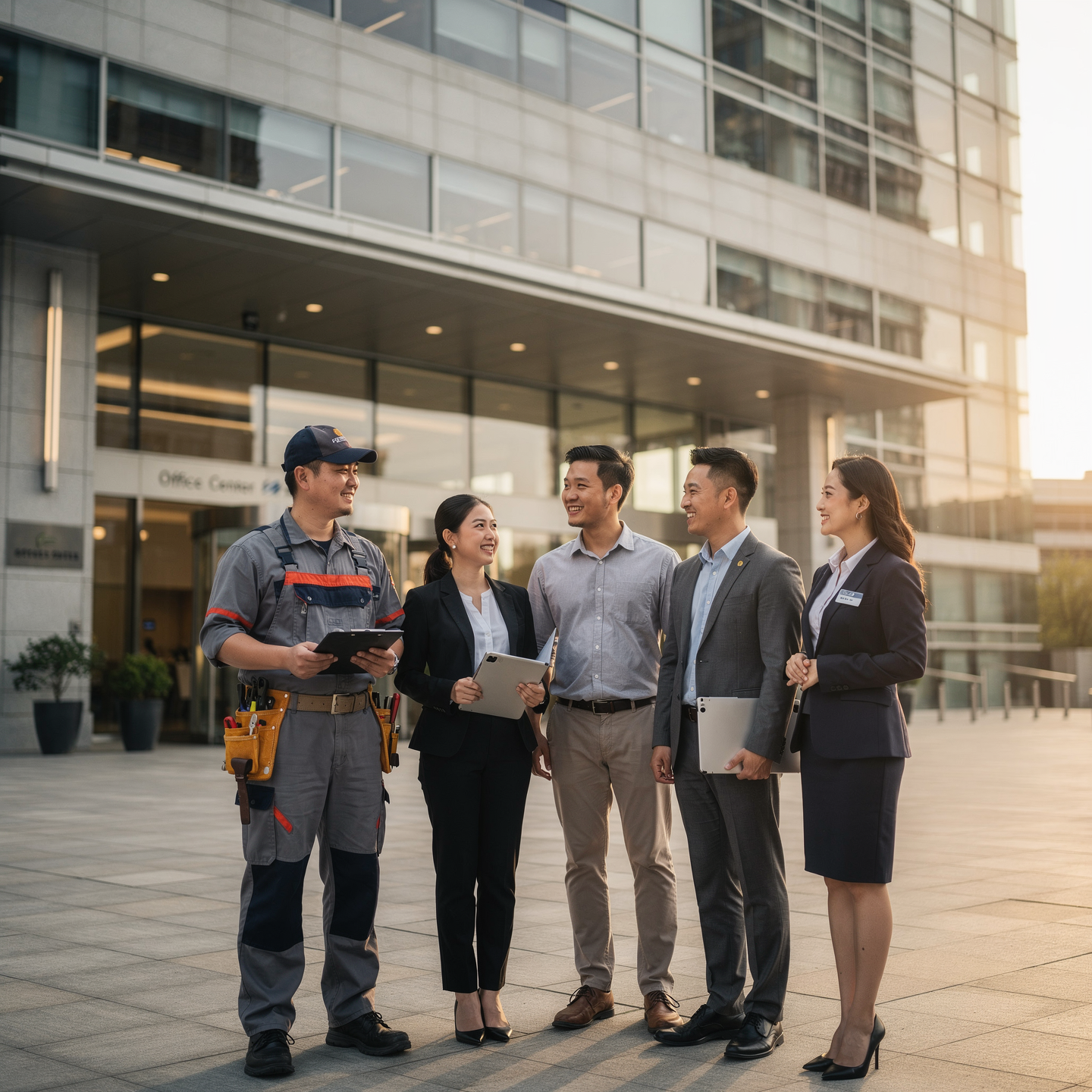 อนเริ่มงาน ทีมบริหารงานหน้างาน (Site Manager) ของเราจะเข้าสำรวจพื้นที่และจัดทำคู่มือปฏิบัติงาน (SOP) ร่วมกับลูกค้า เพื่อใช้อบรมพนักงานให้เข้าใจระบบเฉพาะของอาคารนั้นๆ ก่อนเริ่มปฏิบัติงานจริงครับ
