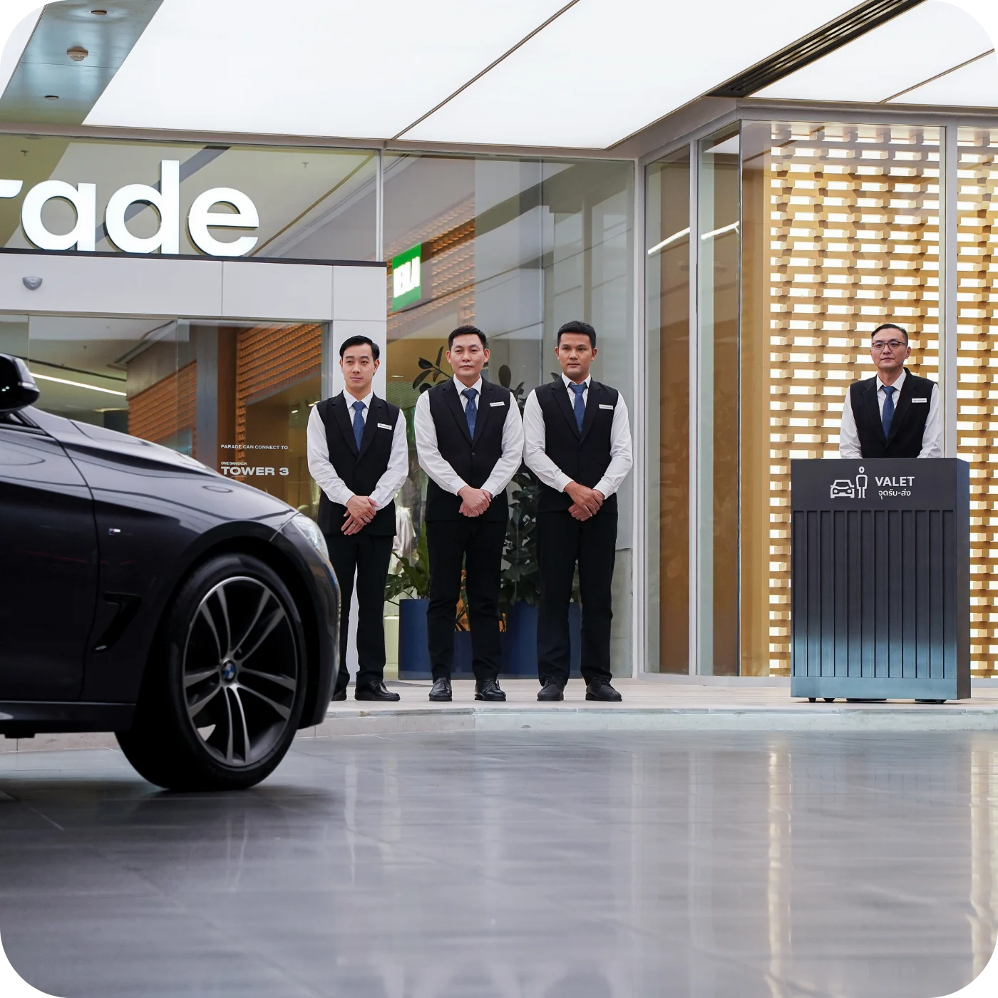 Valet Parking Service หรือ บริการพนักงานรับจอดรถ ระดับพรีเมียม ที่ช่วยให้ลูกค้าของคุณได้รับความสะดวกสบายตั้งแต่วินาทีแรกที่ก้าวลงจากรถ โดยไม่ต้องเสียเวลาหาที่จอดเอง เรามีทีมงานมืออาชีพที่ผ่านการฝึกอบรมมาอย่างดี พร้อมให้บริการด้วยความสุภาพ และปลอดภัย