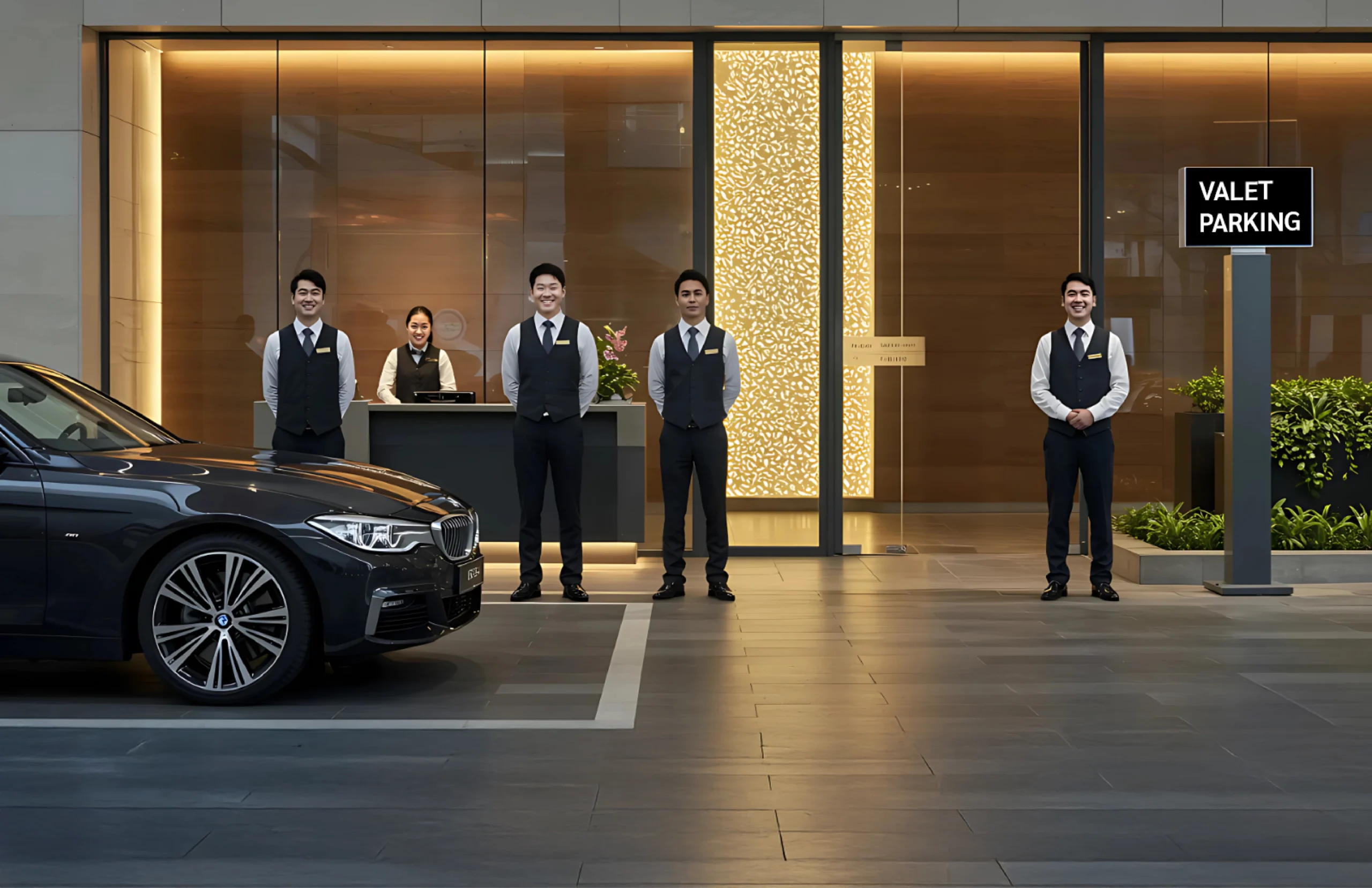 Valet Parking Service หรือ บริการพนักงานรับจอดรถ ระดับพรีเมียม ที่ช่วยให้ลูกค้าของคุณได้รับความสะดวกสบายตั้งแต่วินาทีแรกที่ก้าวลงจากรถ โดยไม่ต้องเสียเวลาหาที่จอดเอง เรามีทีมงานมืออาชีพที่ผ่านการฝึกอบรมมาอย่างดี พร้อมให้บริการด้วยความสุภาพ และปลอดภัย
